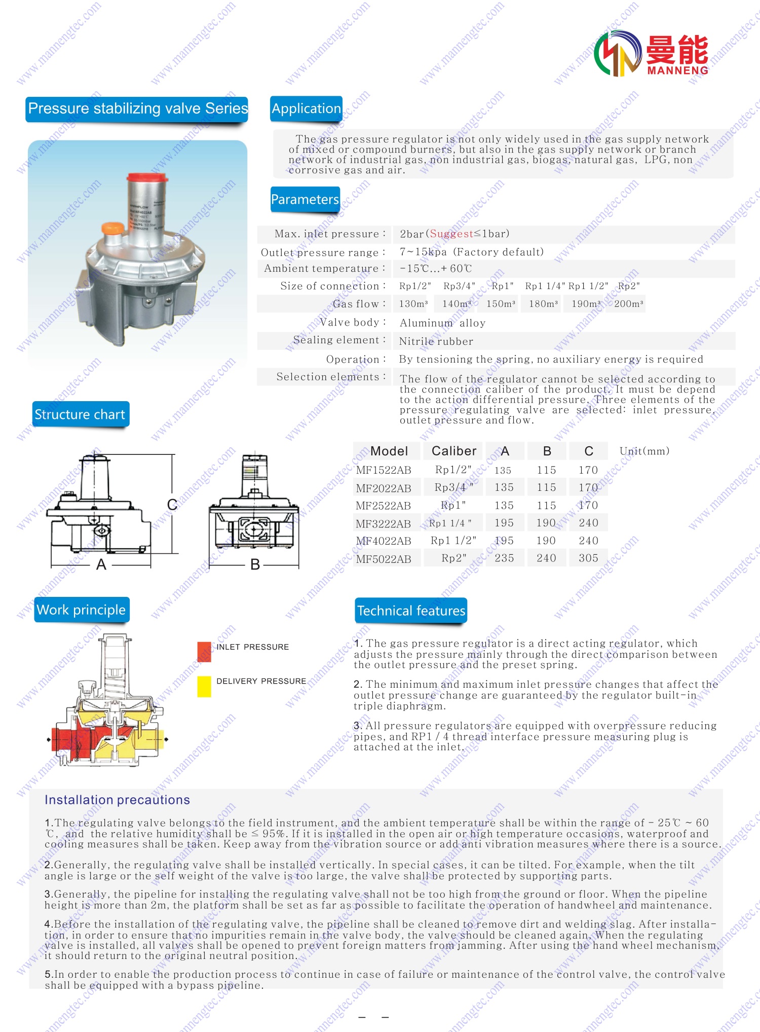 The gas pressure regulator is not only widely used in the gas supply network of mixed or compound burners, but also in the gas supply network or branch network of industrial gas, non industrial gas, biogas, natural gas, LPG, non corrosive gas and air.